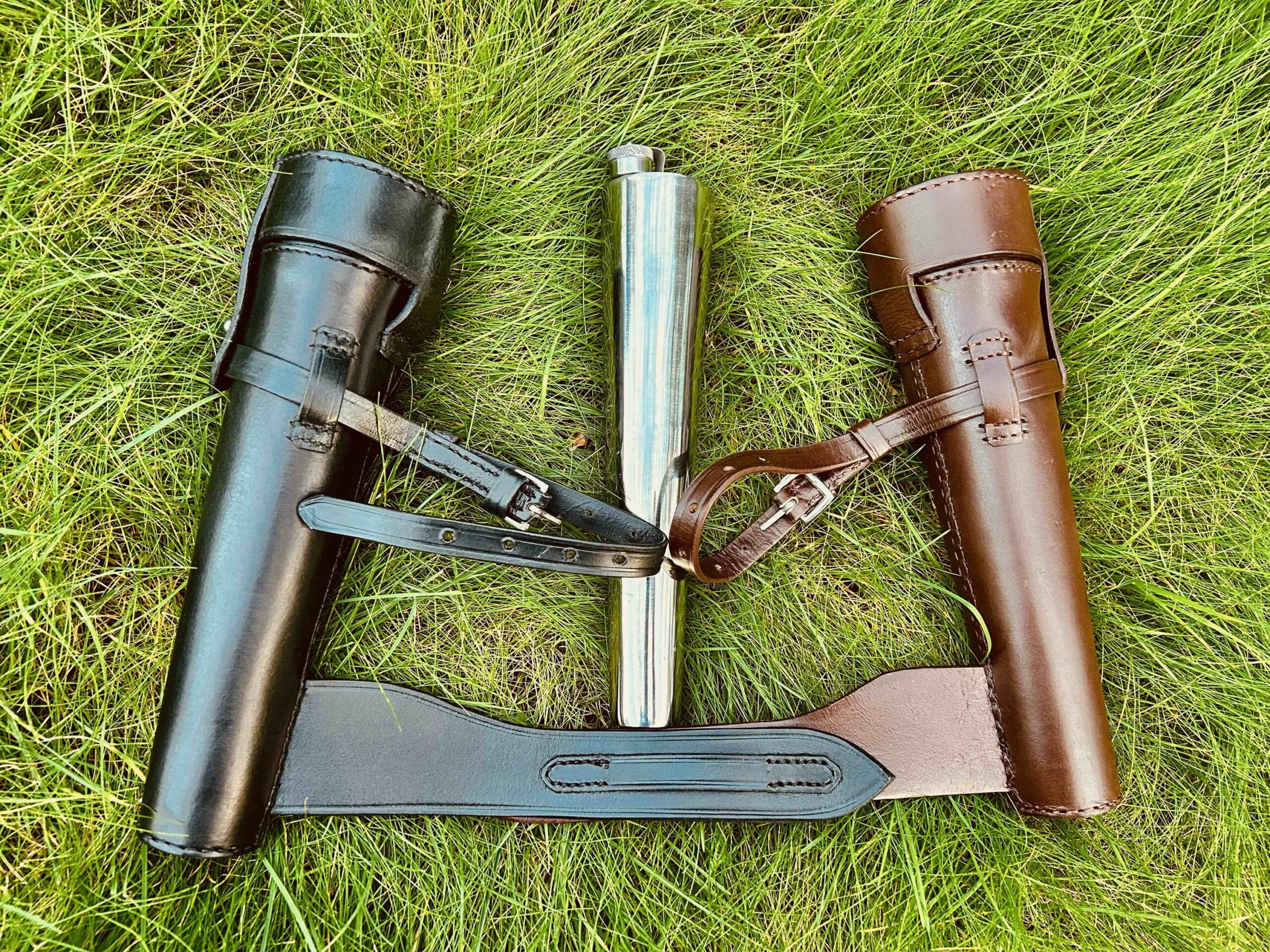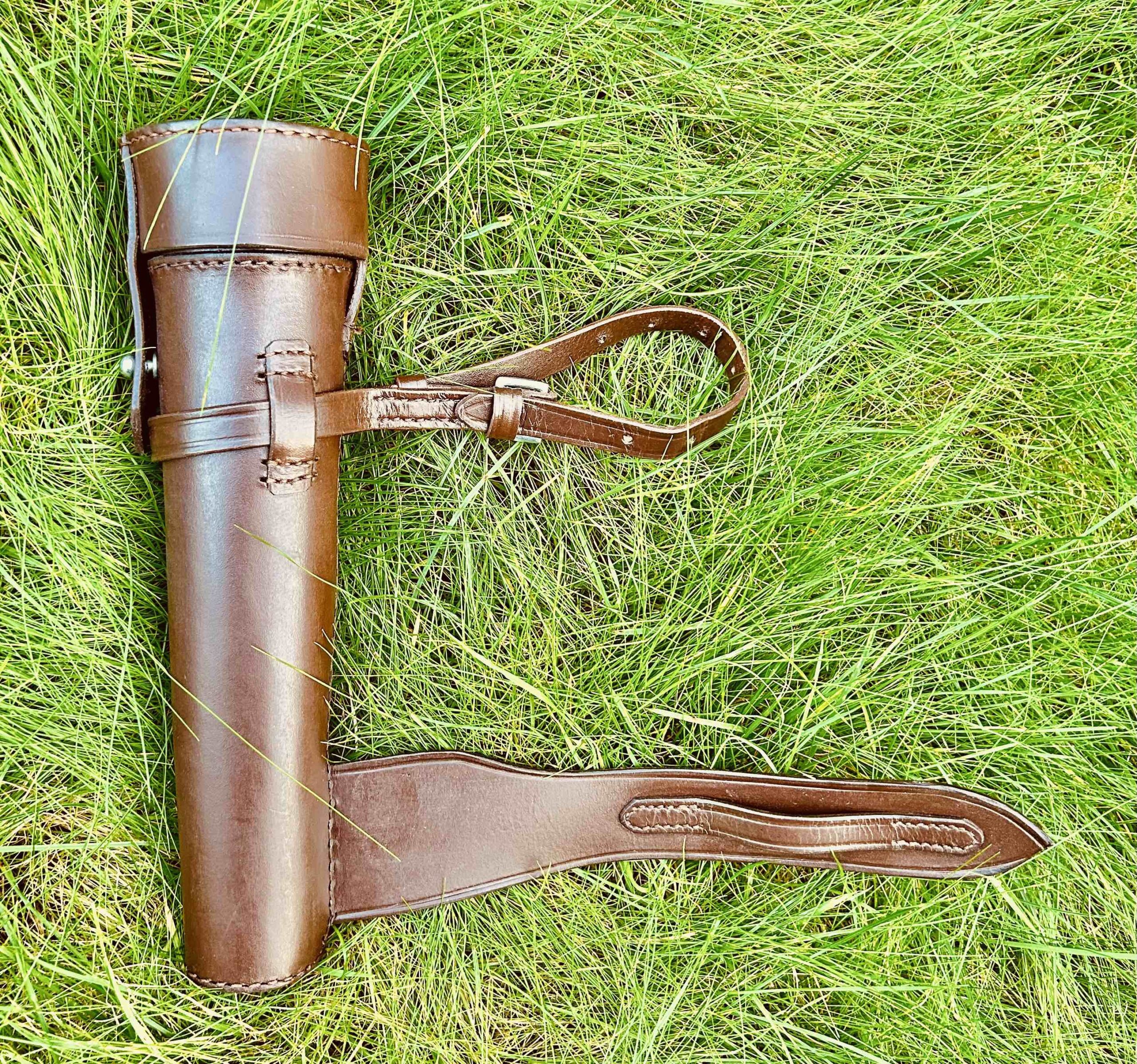 This Saddle Hip Flask is made of High-quality Stainless Steel with a Captive Top to avoid leakage. It has a Leather Case made of bridle leather with Rot-proof Nylon stitching and an adjustable buckle top strap which attaches to the D-ring at the top of your saddle and a bottom strap which attaches to the girth adjustment strap, making attachment to saddles hassle-free from both sides. Ideal for horse riding and fox hunting.